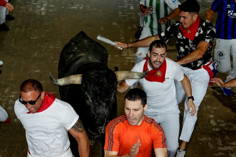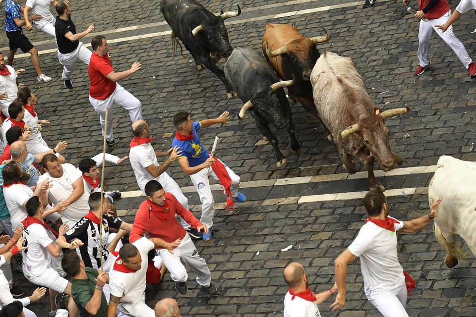 Seven runners were injured on Sunday alone. Participants often flee with bruises. The nine-day San Fermin celebrations are best known for the running of the bulls in the streets of Pamplona.