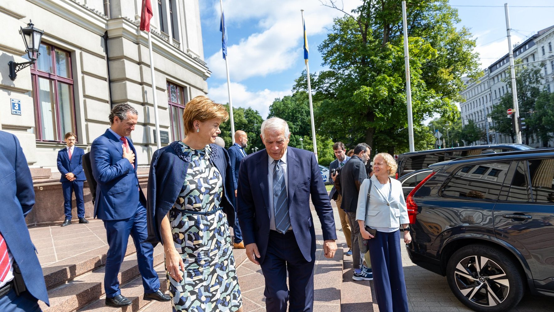 The EU High Representative has arrived in Latvia on a working visit. He also plans to meet with Defense Minister Andris Sprudus and visit the Adaz military base.