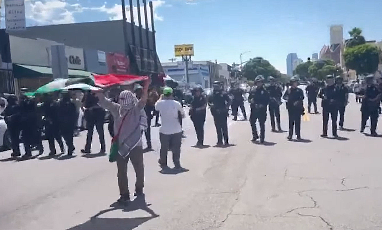 The clashes broke out when some supporters of the Palestinian side in the Gaza conflict staged a protest outside the Adastola synagogue in the American city.