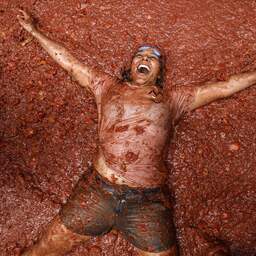 On Wednesday, the village of Buñol in the Spanish province of Valencia once again became the scene of the annual tomato fight. Thousands of people gathered to throw ripe tomatoes at each other. A series of photos from the tomato festival.