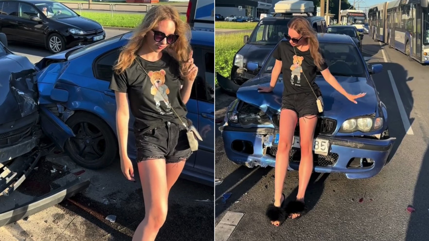 A traffic accident occurred at the intersection of Dzelzavas Street and Gunāras Astras Street in Riga at around 5 pm on Monday, June 24. The accident involved multiple vehicles – a “train” consisting of three passenger cars hit the rear of a trolleybus.