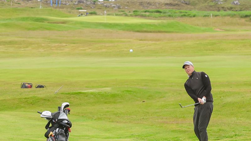 In the women’s category, Eva Kristinsdóttir had the best performance. She was in the lead after the first day but lost yesterday to the defending Icelandic champion Ragnhildar Kristinsdóttir. Eva shot two under and is now tied with Ragnhildar, who remains in first place today with one under.