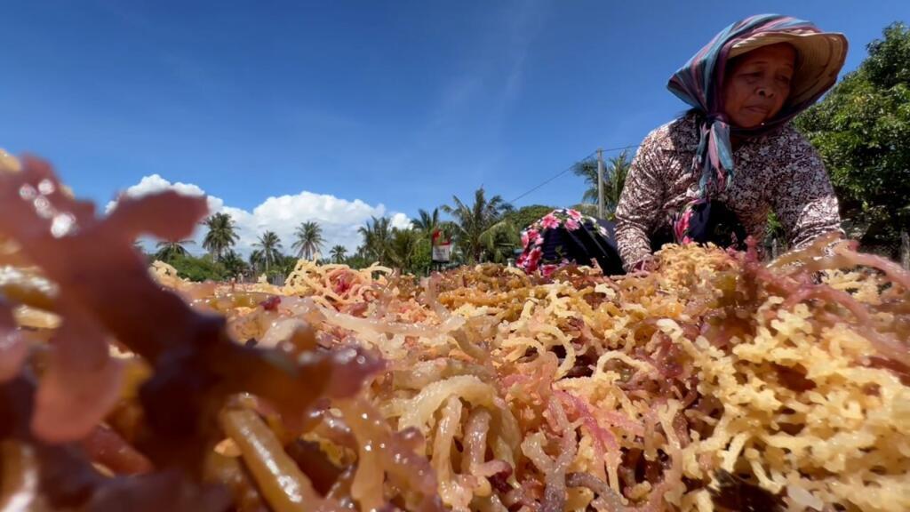 Seaweed growers in Prek Ampil village, Gongkor commune, Bokor city, Kampot province complained that brokers have suspended the purchase of dried seaweed from the Vietnamese. According to growers, this market problem has lasted for nearly a year, with prices falling from more than 4,000 riels per kilogram to 2,000 riels or even less than 2,000 riels.
