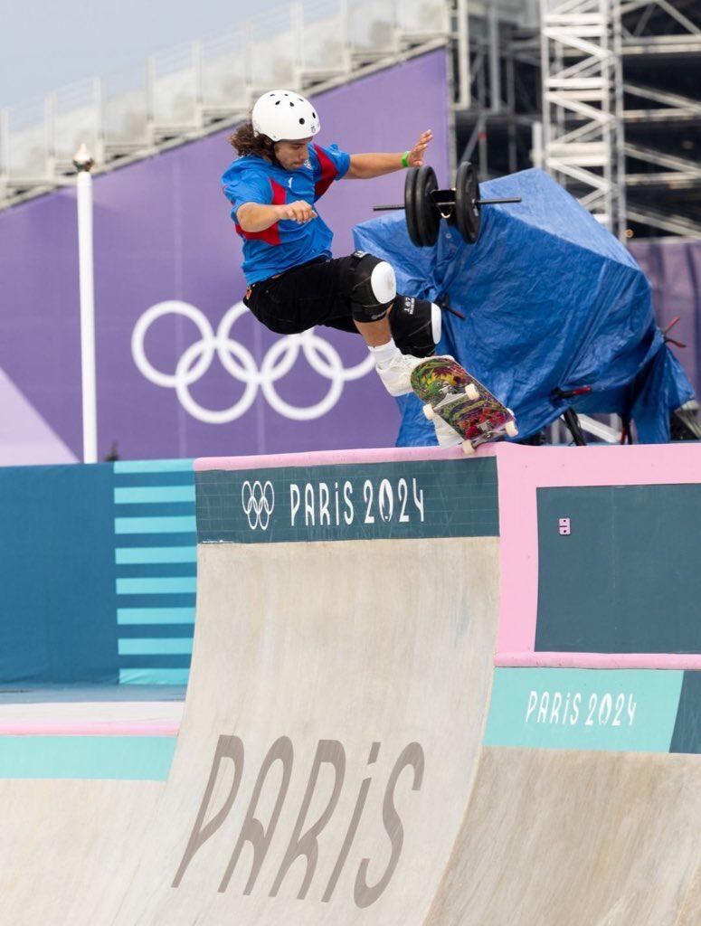 Tokyo 2020 Olympic finalist Steven Pineiro skates in the preliminary round of the 2024 Paris 4 Place de la Concorde event on Wednesday, with the skateboarding competition starting at 6:30 a.m. / 12:30 p.m. Paris.