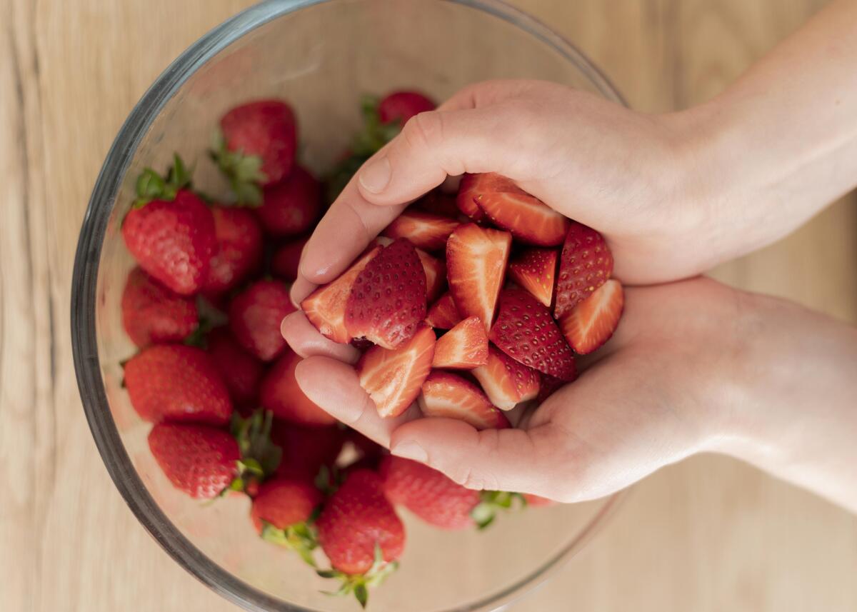 Place the strawberries in water and let sit for 30 minutes.
