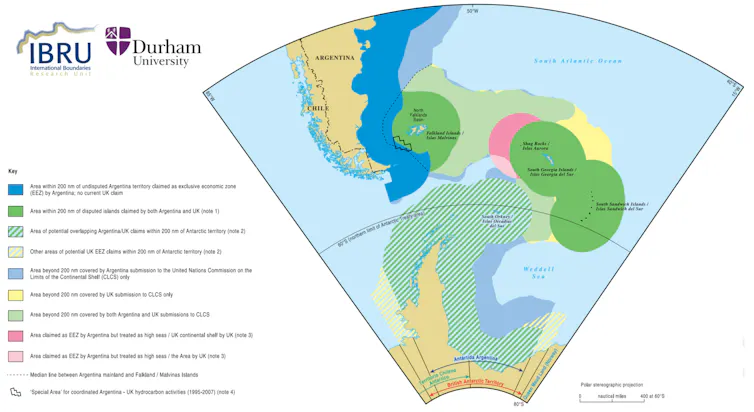 A similar situation may exist in the South Atlantic, but due to the long-standing dispute between Argentina and the United Kingdom over the Falklands/Malvinas Islands, which has sometimes led to open military conflict, most recently the Falklands War in 1982. There are no similar land territorial disputes between Arctic states, but rather maritime territorial disputes.