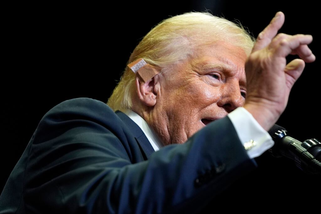 “That was exactly a week ago, even down to the hour, even down to the minute,” Trump told the crowd, recalling the July 13 shooting in Pennsylvania that ended with a bloody ear and the death of a supporter and other spectators. Two people were injured.