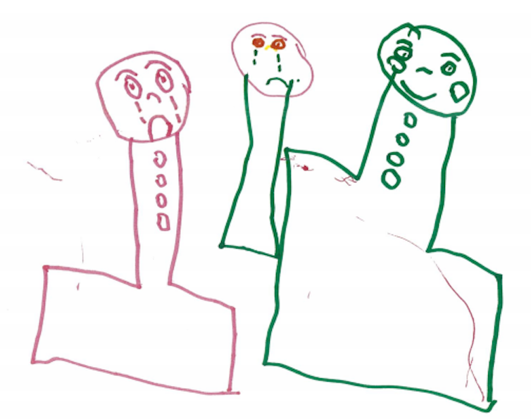 Some people expressed their feelings through drawings. In the following drawing, a five-year-old girl whose mother had self-harmed described (from left to right):